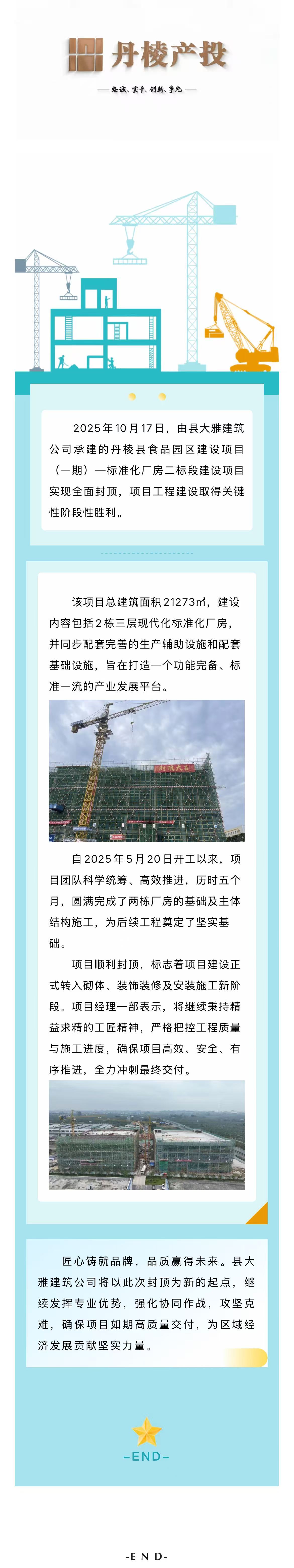 【縣大雅建筑公司】丹棱縣食品園區建設項目(一期)—標準化廠房二標段建設項目順利封頂